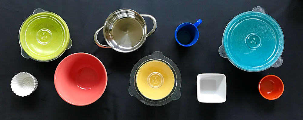 Designed to fit on top of most bowls, mugs, glassware, Dutch ovens, pots and pans. We recommend microwave safe, non- plastic vessels for use in the microwave. The lids are flat and can be flipped over to fit; the concentric rings are there to keep the lid from sliding off while on the vessel. The 3 vents are to let just enough steam escape, clear glass is ideal for monitoring food. (Glass may get HOT, always use an oven mitt or dry towel when cooking)